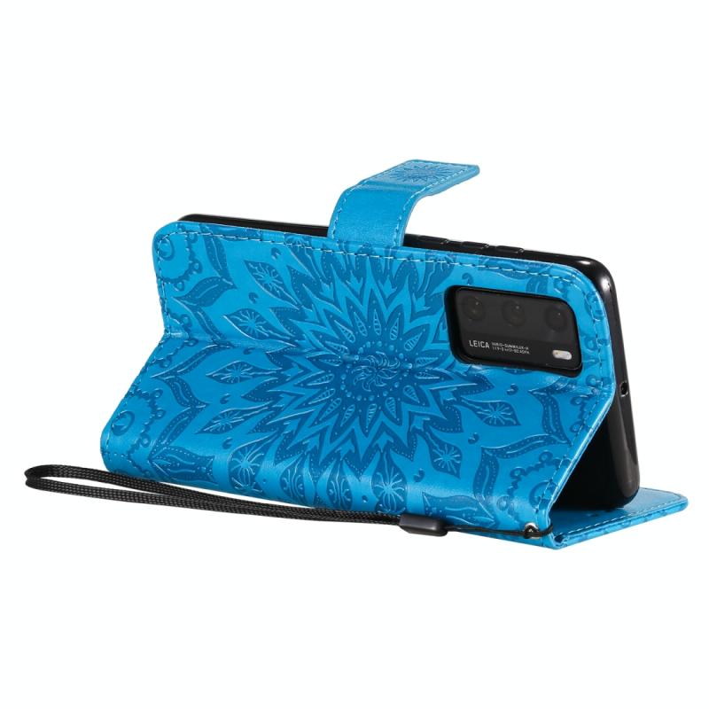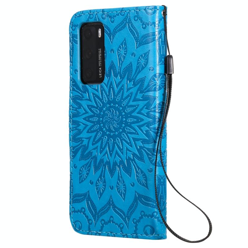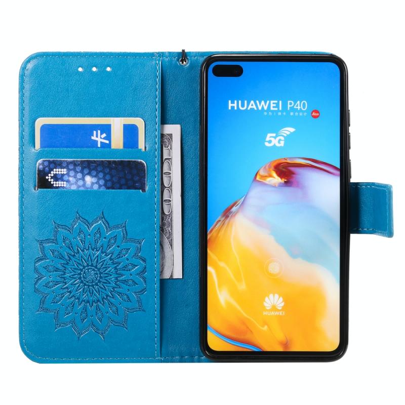 Θήκη Huawei P40 με εκτύπωση ηλιοτροπίου, οριζόντια αναδίπλωση, από δερματίνη PU με βάση, θήκες για κάρτες, πορτοφόλι & λουρί (Κόκκινο)
