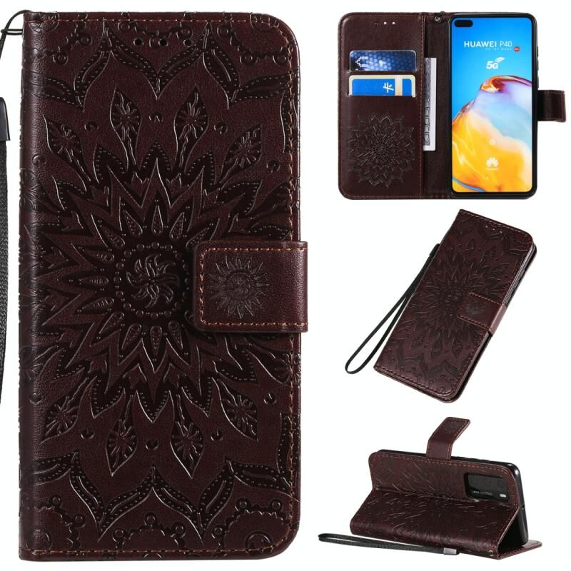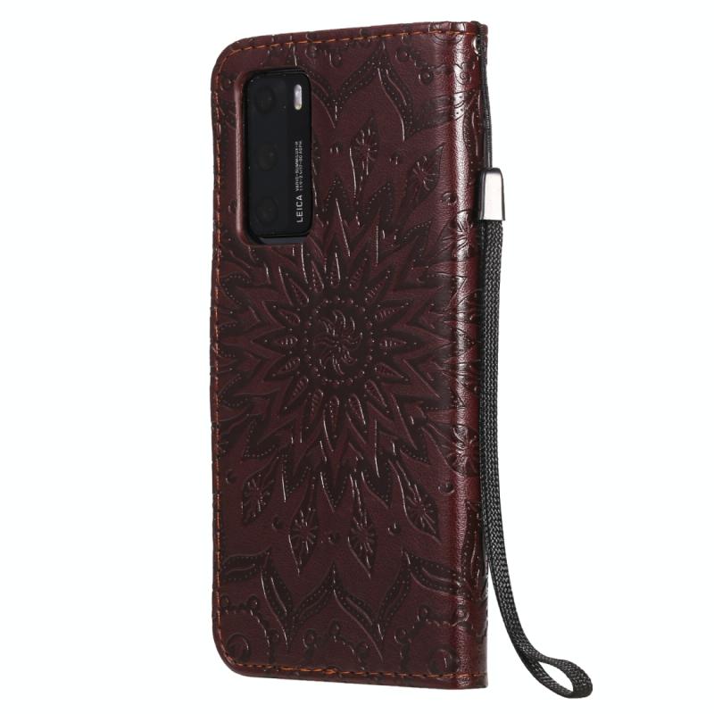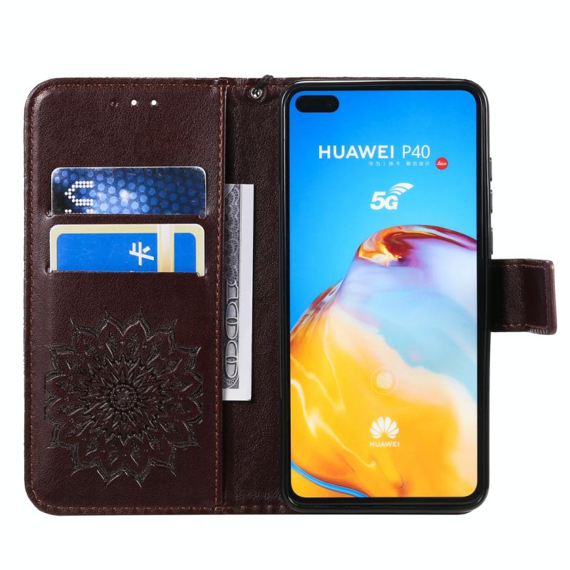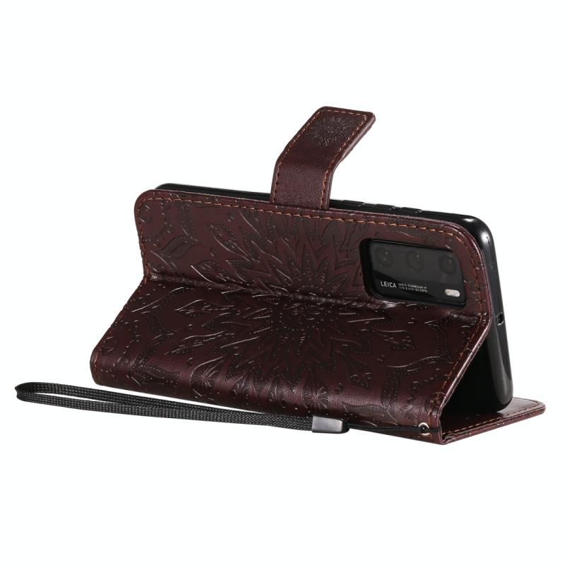 Θήκη Huawei P40 με εκτύπωση ηλιοτροπίου, οριζόντια αναδίπλωση, από δερματίνη PU με βάση, θήκες για κάρτες, πορτοφόλι & λουρί (Κόκκινο)