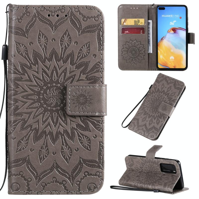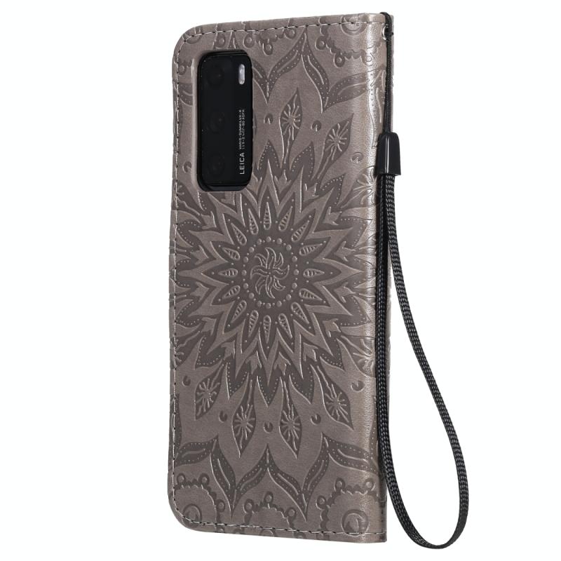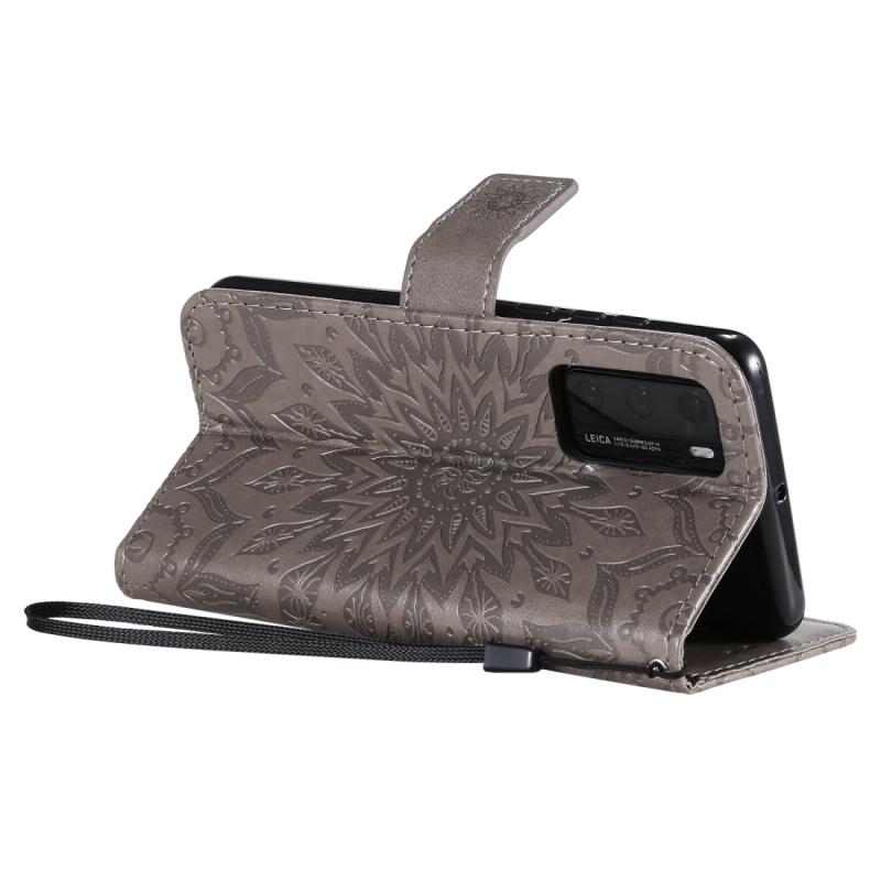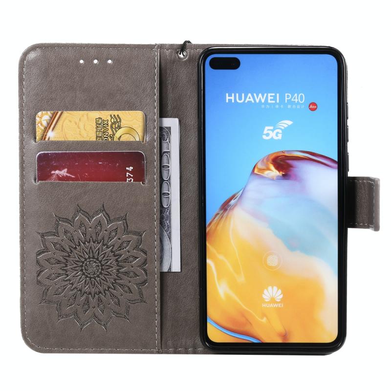 Θήκη Huawei P40 με εκτύπωση ηλιοτροπίου, οριζόντια αναδίπλωση, από δερματίνη PU με βάση, θήκες για κάρτες, πορτοφόλι & λουρί (Κόκκινο)