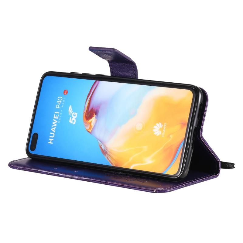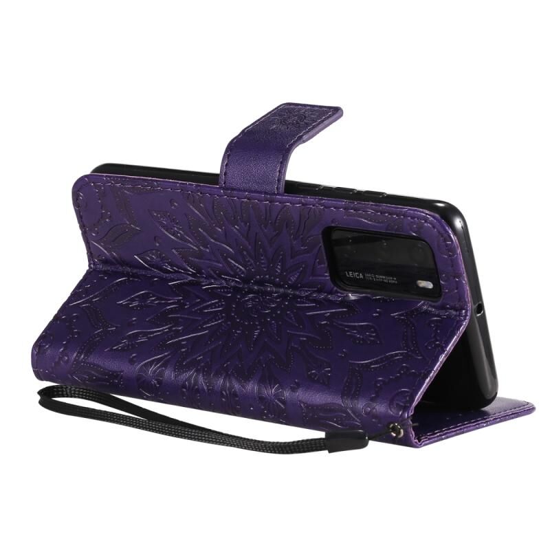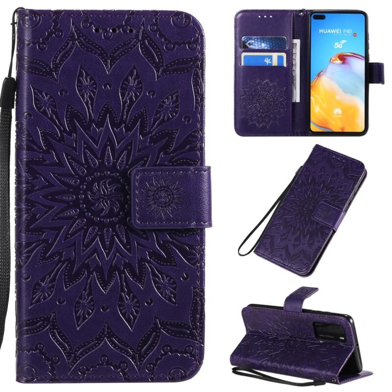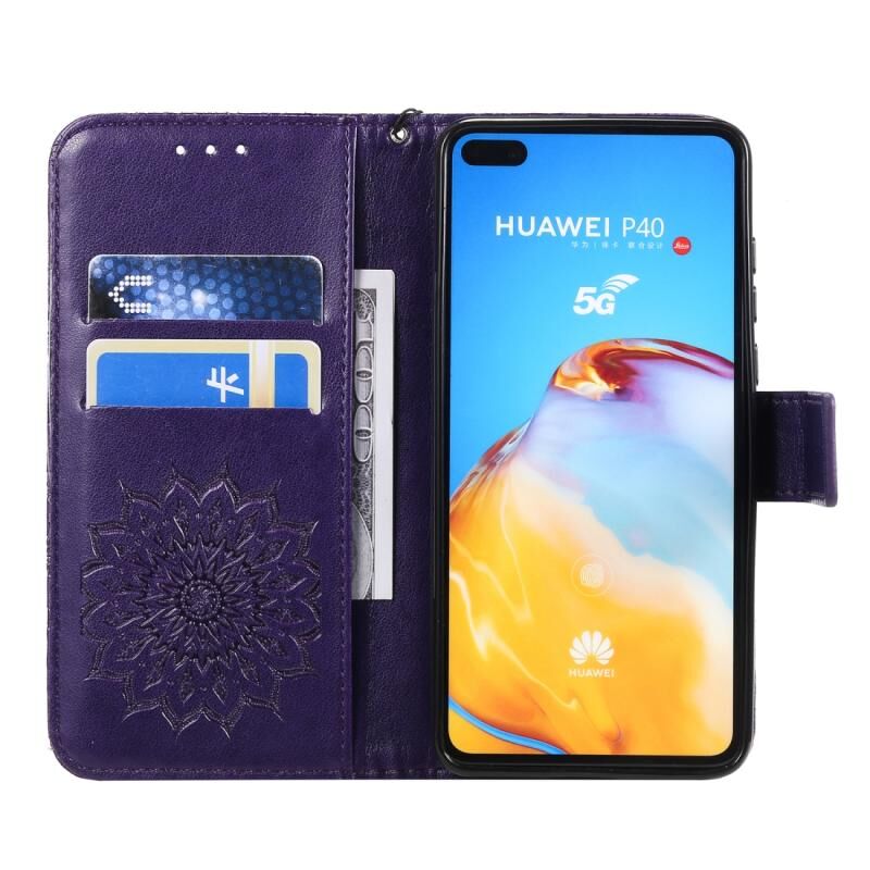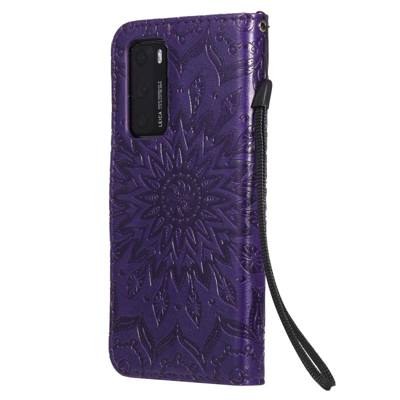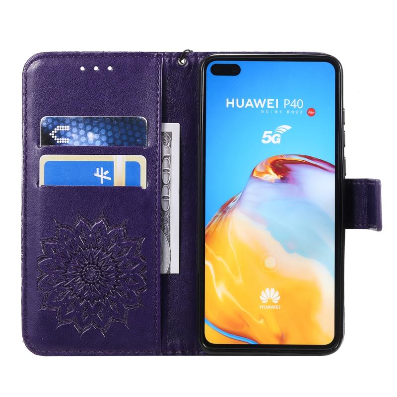 Θήκη Huawei P40 με εκτύπωση ηλιοτροπίου, οριζόντια αναδίπλωση, από δερματίνη PU με βάση, θήκες για κάρτες, πορτοφόλι & λουρί (Κόκκινο)