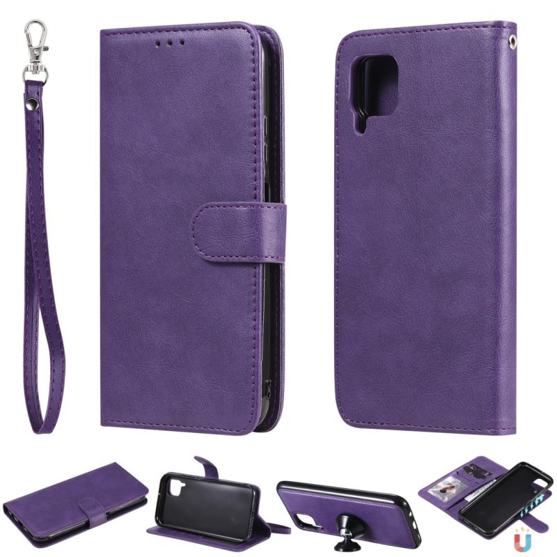 For Huawei P40 Pro 2 in 1 Solid Color Detachable PU Leather Case with Card Slots & Magnetic Holder & Photo Frame & Wallet & Strap(Purple)