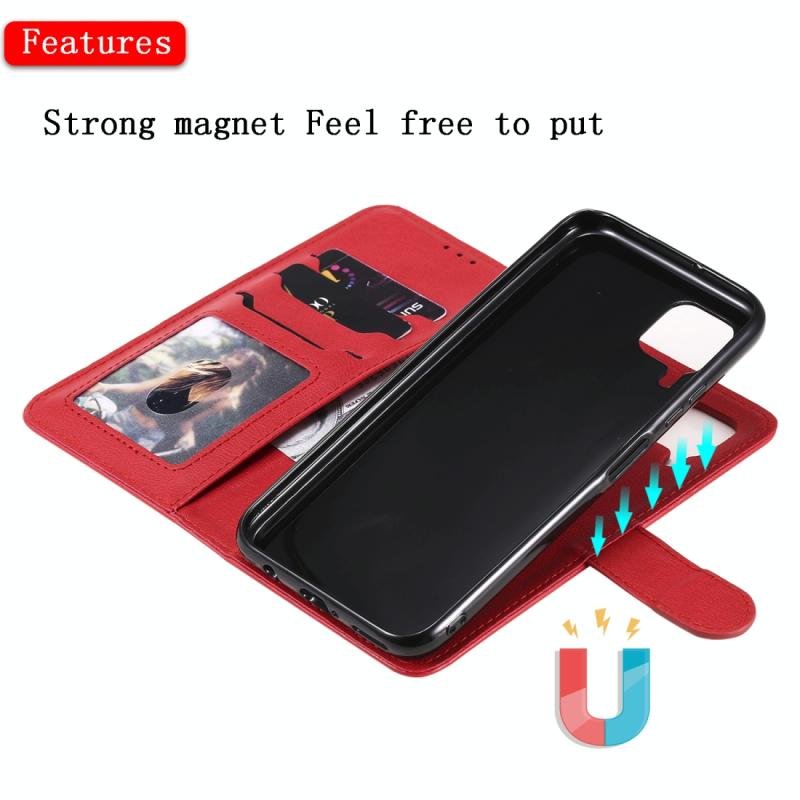 For Huawei P40 Pro 2 in 1 Solid Color Detachable PU Leather Case with Card Slots & Magnetic Holder & Photo Frame & Wallet & Strap(Red)
