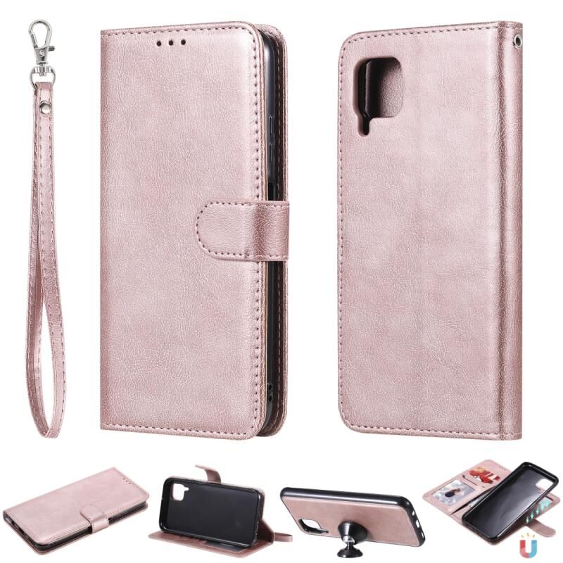 For Huawei P40 Pro 2 in 1 Solid Color Detachable PU Leather Case with Card Slots & Magnetic Holder & Photo Frame & Wallet & Strap(Rose Gold)