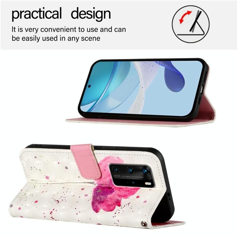 Θήκη τηλεφώνου από δέρμα με οριζόντια αναδίπλωση και τρισδιάστατη ζωγραφική για Huawei P40 Pro (Λουλούδι)