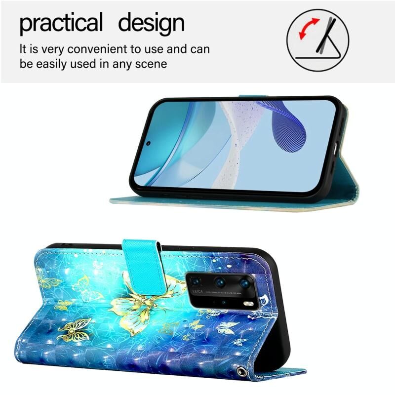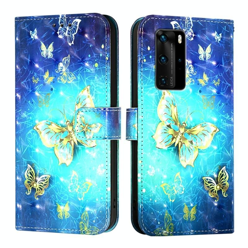 Θήκη τηλεφώνου δερμάτινη με οριζόντιο άνοιγμα και τρισδιάστατη ζωγραφική για Huawei P40 Pro (Χρυσή Πεταλούδα)