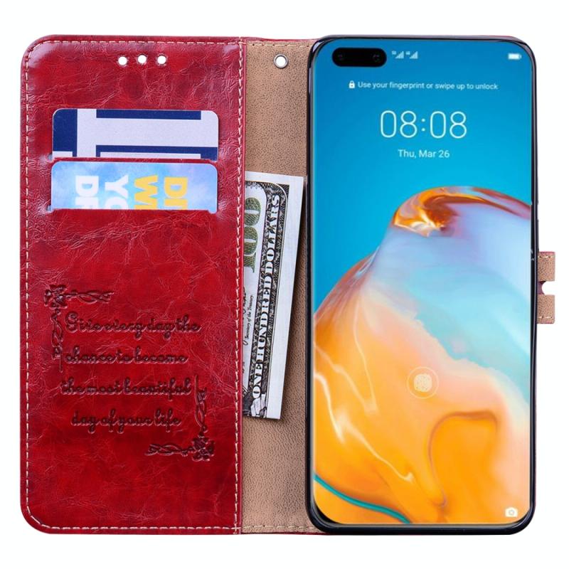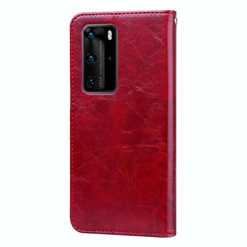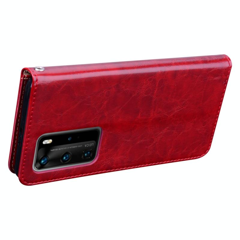 Θήκη δέρματος οριζόντιας αναδίπλωσης με υφή λαδιού και κεριού για Huawei P40 Pro, σε επαγγελματικό στυλ, με βάση στήριξης & υποδοχές καρτών & πορτοφόλι (Κόκκινο)
