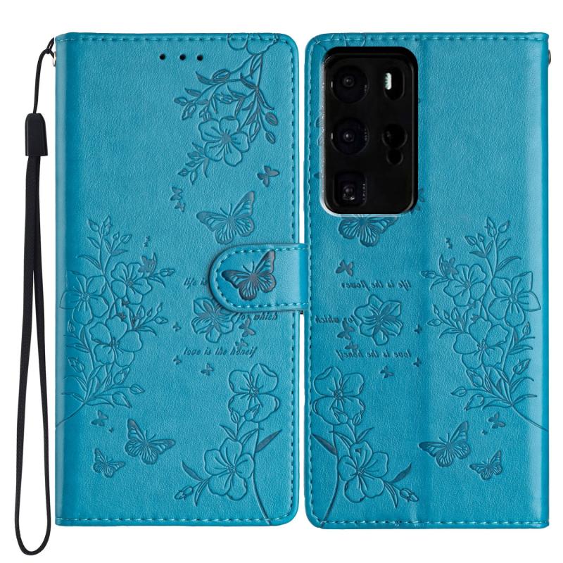 For Huawei P40 Pro Butterflies And Flowers Leather Phone Case(Blue)