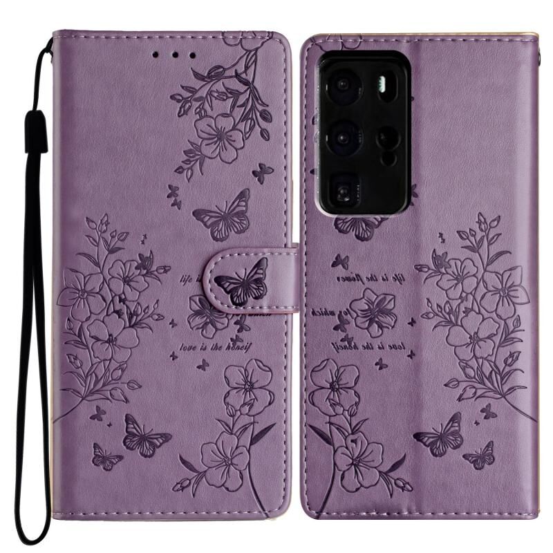 Θήκη τηλεφώνου από δέρμα με πεταλούδες και λουλούδια για Huawei P40 Pro (Χρυσό)