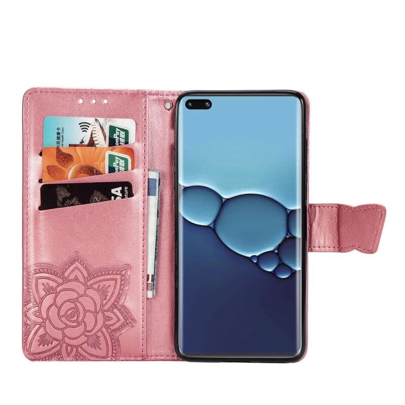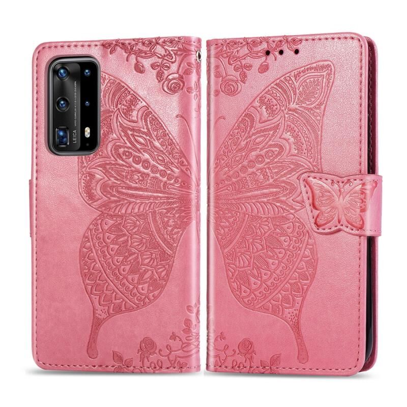 Θήκη Huawei P40 Pro Butterfly Love Flower Embossed Οριζόντια Δερμάτινη με Στήριγμα / Θήκη Κάρτας / Πορτοφόλι / Λουρί (Σκούρο Μωβ)
