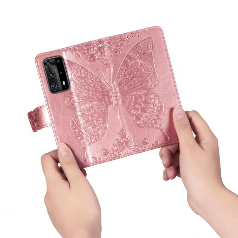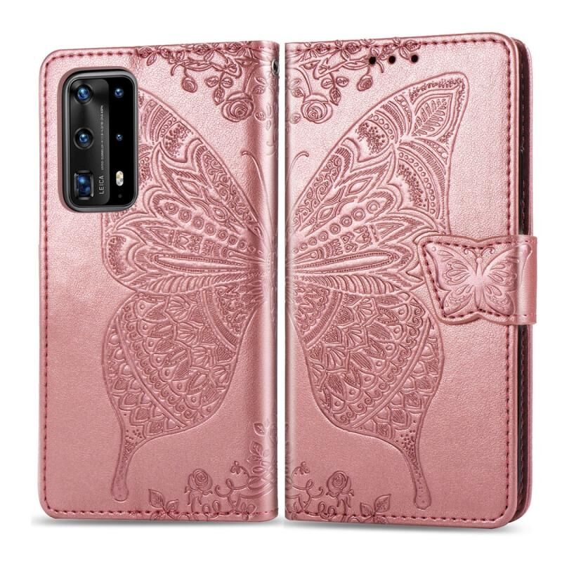 Θήκη Huawei P40 Pro Butterfly Love Flower Embossed Οριζόντια Δερμάτινη με Στήριγμα / Θήκη Κάρτας / Πορτοφόλι / Λουρί (Ροζ χρυσός)