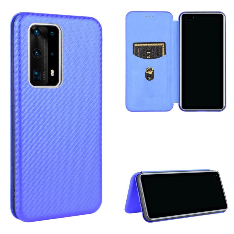 For Huawei P40 Pro+ Carbon Fiber Texture Horizontal Flip TPU + PC + PU Leather Case with Card Slot(Blue)