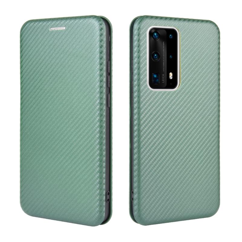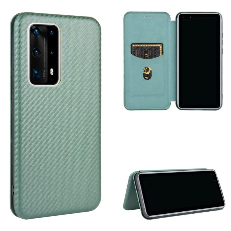 For Huawei P40 Pro+ Carbon Fiber Texture Horizontal Flip TPU + PC + PU Leather Case with Card Slot(Green)