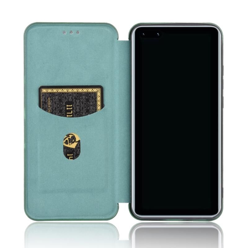Θήκη για Huawei P40 Pro+ με υφή ανθρακονημάτων, οριζόντια, αναδιπλούμενη, από TPU + PC + Δερματίνη PU με θήκη για κάρτες (Ροζ)