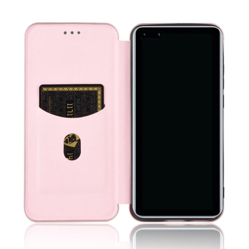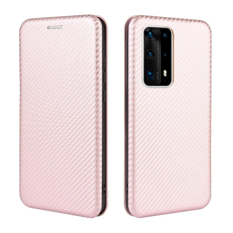 For Huawei P40 Pro+ Carbon Fiber Texture Horizontal Flip TPU + PC + PU Leather Case with Card Slot(Pink)