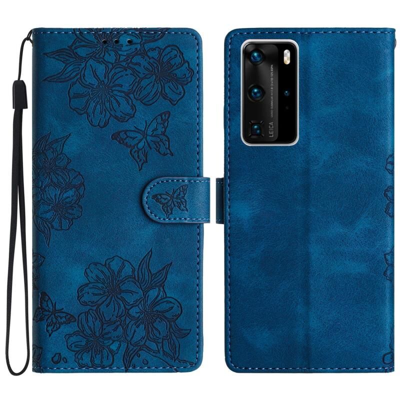 Θήκη τηλεφώνου Huawei P40 Pro Cherry Blossom Butterfly με ανάγλυφη υφή PU (Κόκκινη)