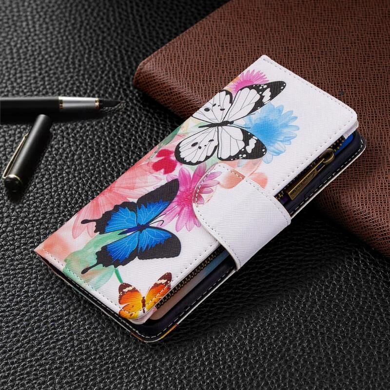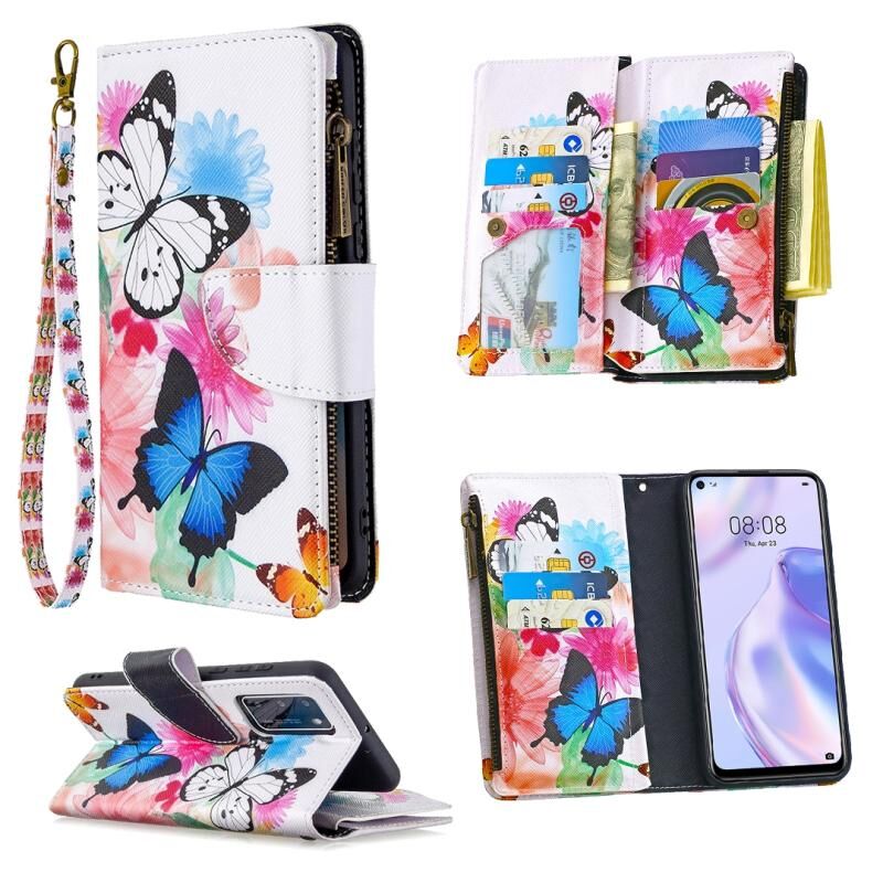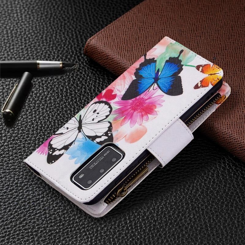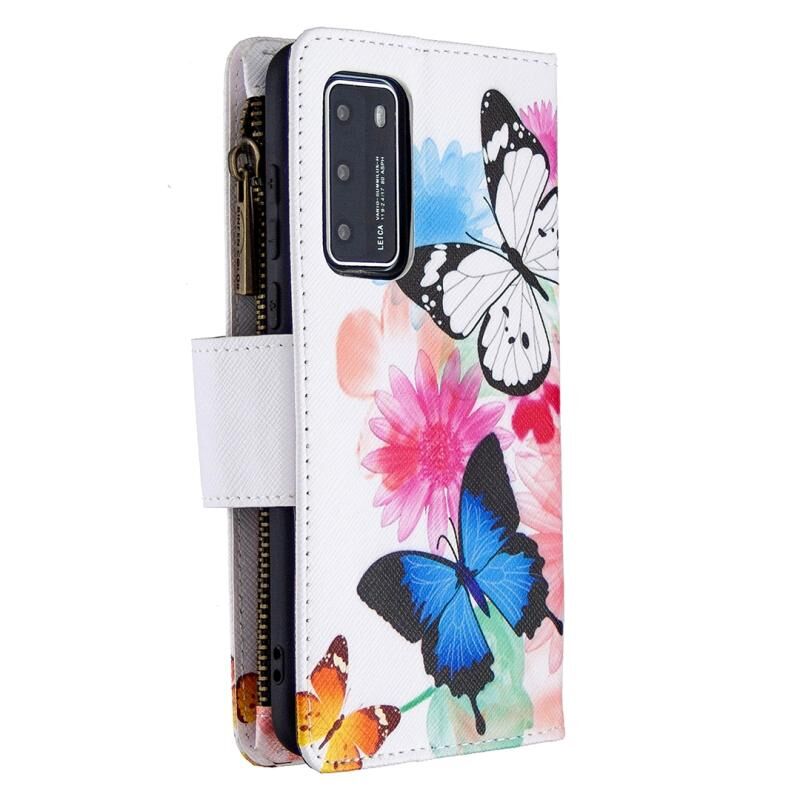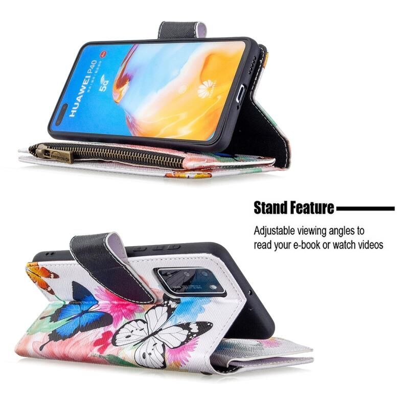 Θήκη δέρματος οριζόντιας αναδίπλωσης με φερμουάρ και σχέδιο ζωγραφικής για Huawei P40 Pro με βάση για κάρτες και πορτοφόλι (Δύο Πεταλούδες)