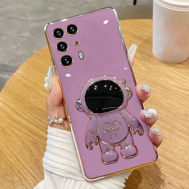 For Huawei P40 Pro+ Electroplating Astronaut Holder Phone Case(Purple)