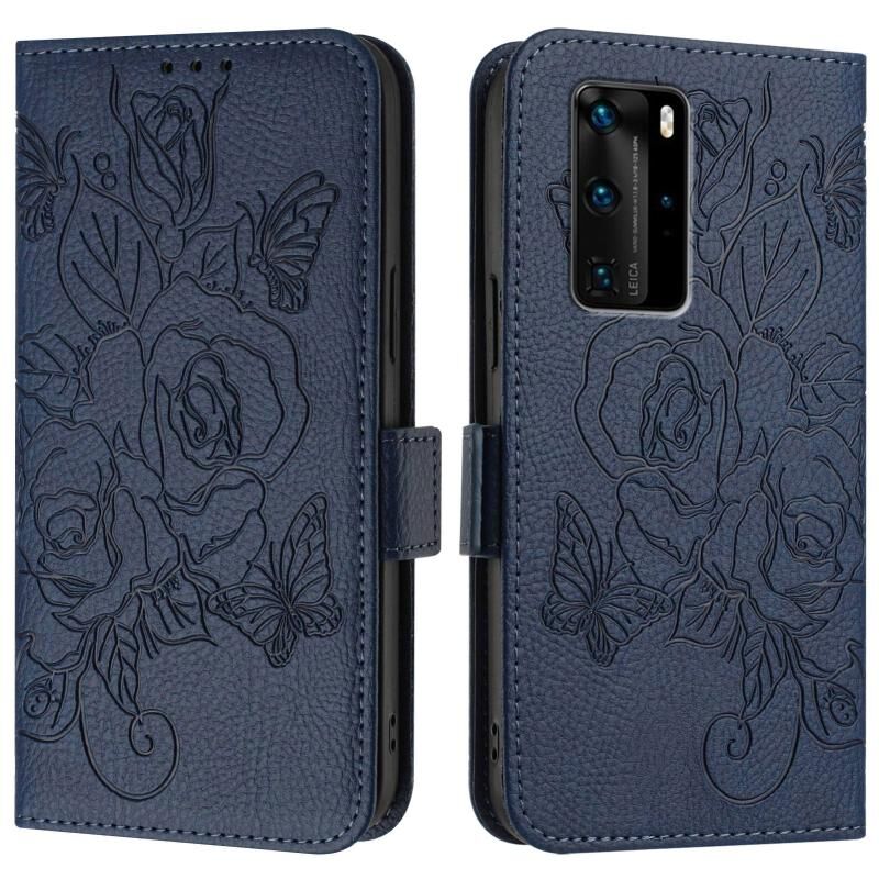 Για Huawei P40 Pro ανάγλυφο Rose RFID Anti-theft δερμάτινη θήκη τηλεφώνου (σκούρο μπλε)