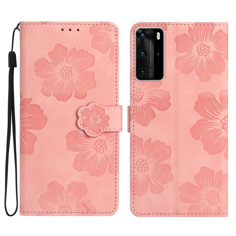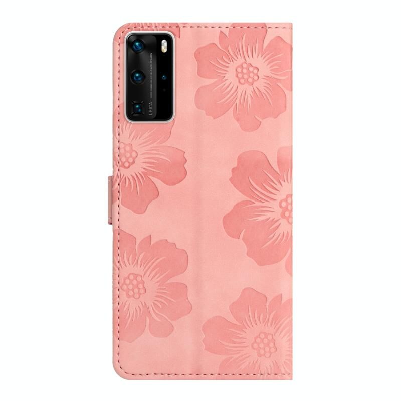 Για Huawei P40 Pro λουλούδι ανάγλυφο μοτίβο δερμάτινη θήκη τηλεφώνου (ροζ)