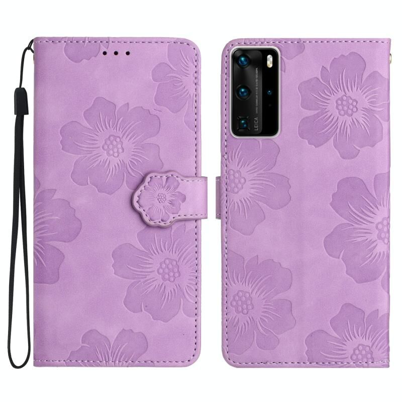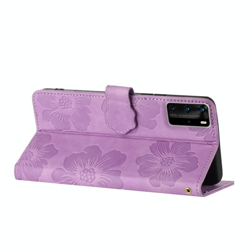 Για Huawei P40 Pro λουλούδι ανάγλυφο μοτίβο δερμάτινη θήκη τηλεφώνου (μωβ)