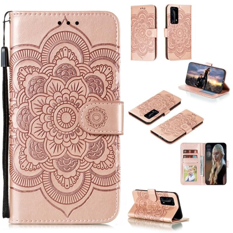 Θήκη Huawei P40 pro+ με ανάγλυφο σχέδιο Mandala, οριζόντια, από δερματίνη PU με βάση & θήκες για κάρτες & πορτοφόλι & κορδόνι (ρόζ)