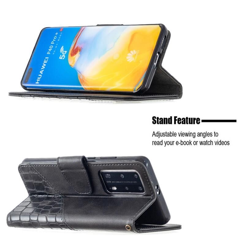 Θήκη Huawei P40 Pro με Υφή Κροκόδειλου, Οριζόντια, Δερμάτινη PU με Πορτοφόλι, Στήριξη & Θήκες Καρτών (Μαύρο)