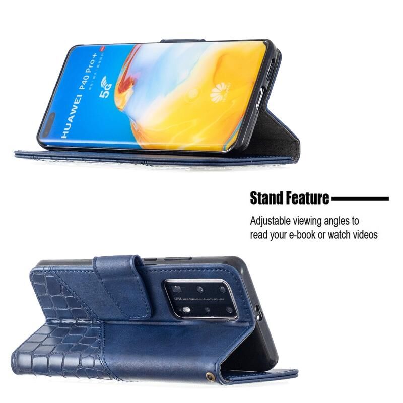 Θήκη Huawei P40 Pro με Υφή Κροκόδειλου, Οριζόντια, Δερμάτινη PU με Πορτοφόλι, Θήκη & Θήκες Καρτών (Μπλε)