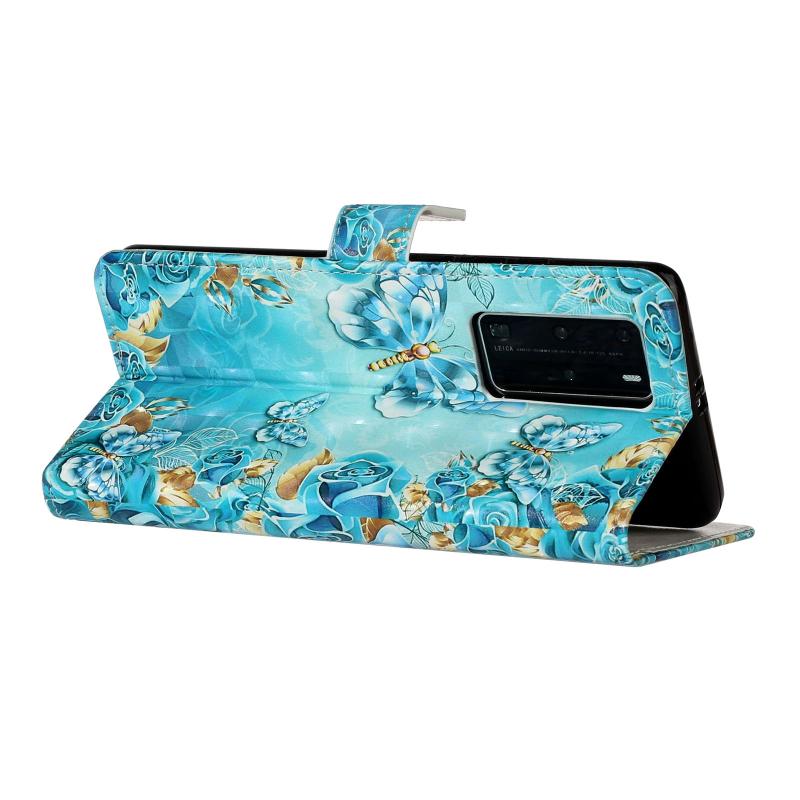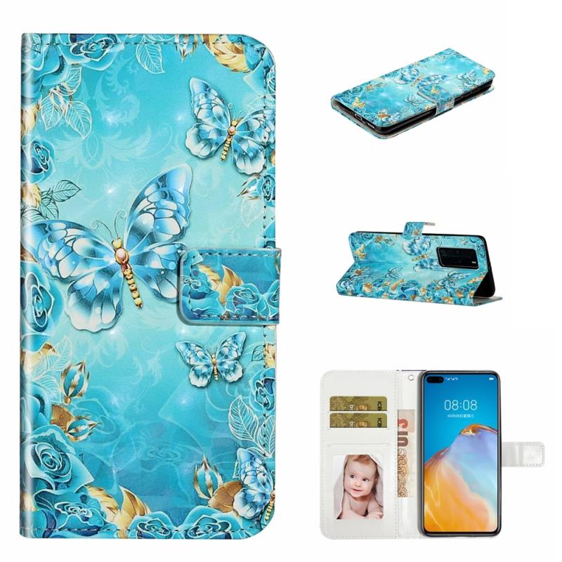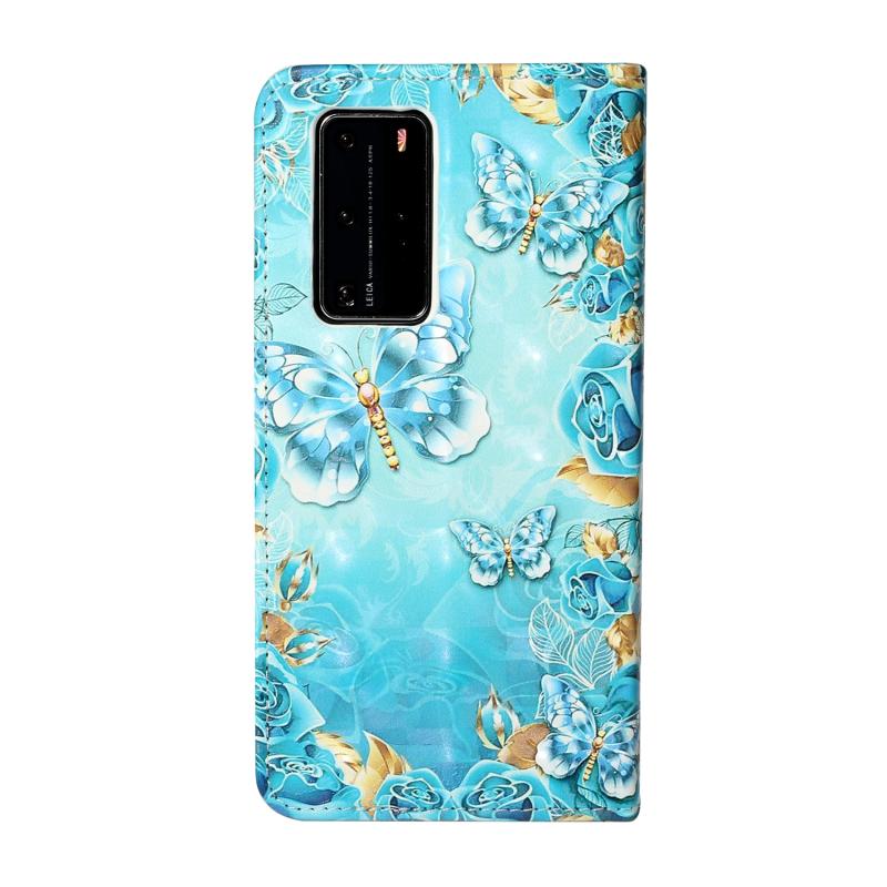 For Huawei P40 Pro Oil Embossed 3D Drawing Leather Phone Case(Blue Butterflies)