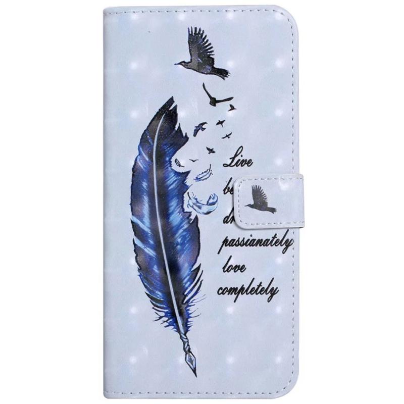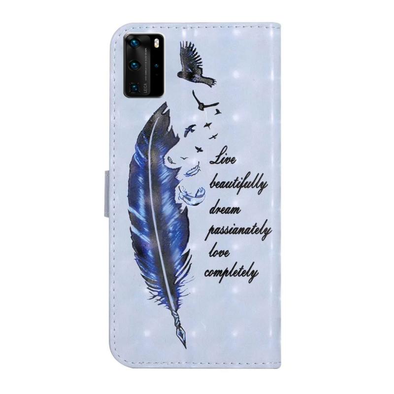 For Huawei P40 Pro Oil Embossed 3D Drawing Leather Phone Case(Blue Feather)