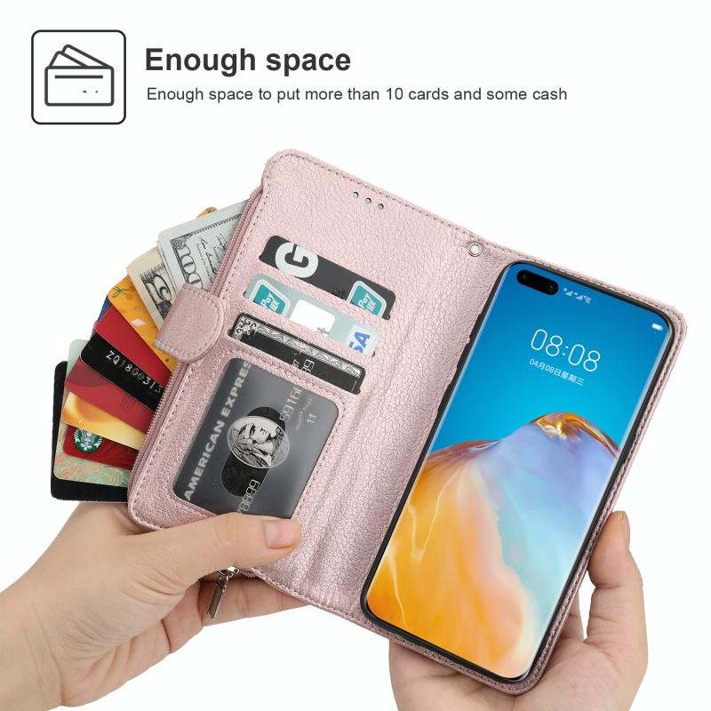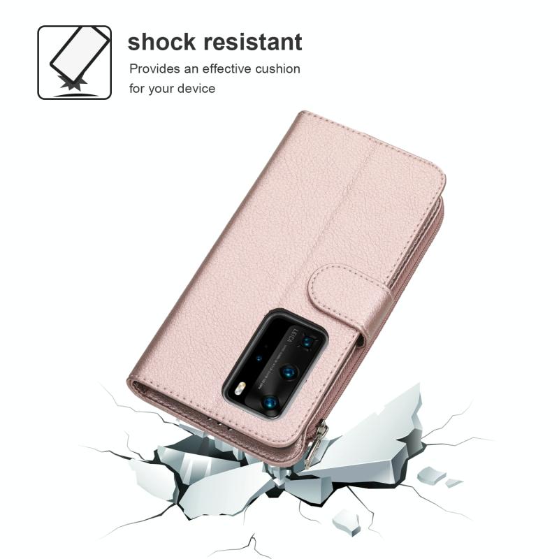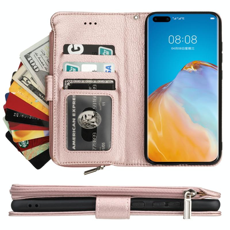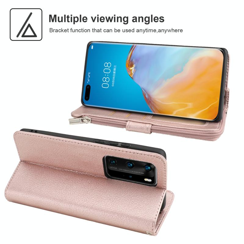 Θήκη δέρματος οριζόντιας αναδίπλωσης με φερμουάρ από μικροΐνες για Huawei P40 Pro / P40 Pro+ (Ροζ χρυσός)