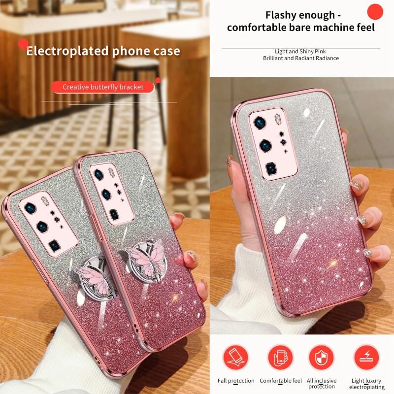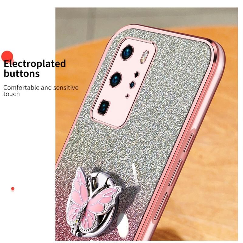 Θήκη κινητού τηλεφώνου Huawei P40 Pro με επιμετάλλωση, διαβαθμισμένη λάμψη, σχέδιο πεταλούδας, από TPU (Μαύρο)