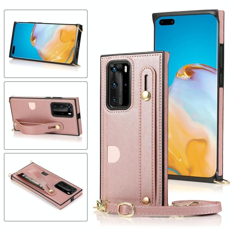 Για Huawei P40 Pro Plus Λουράκι καρπού PU + PU Αδιάβροχη προστατευτική θήκη με κορδόνι & κάτοχος & υποδοχή κάρτας (Rose Gold)