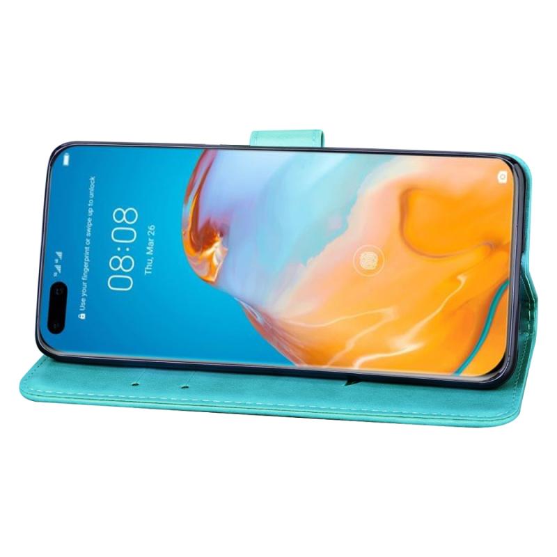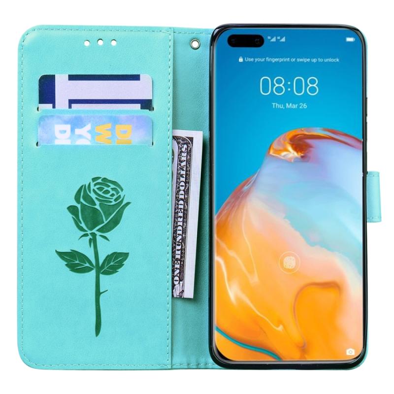 Θήκη Huawei P40 Pro Rose Embossed Οριζόντια Δερμάτινη PU με Στήριξη & Θήκες Καρτών & Πορτοφόλι (Καφέ)