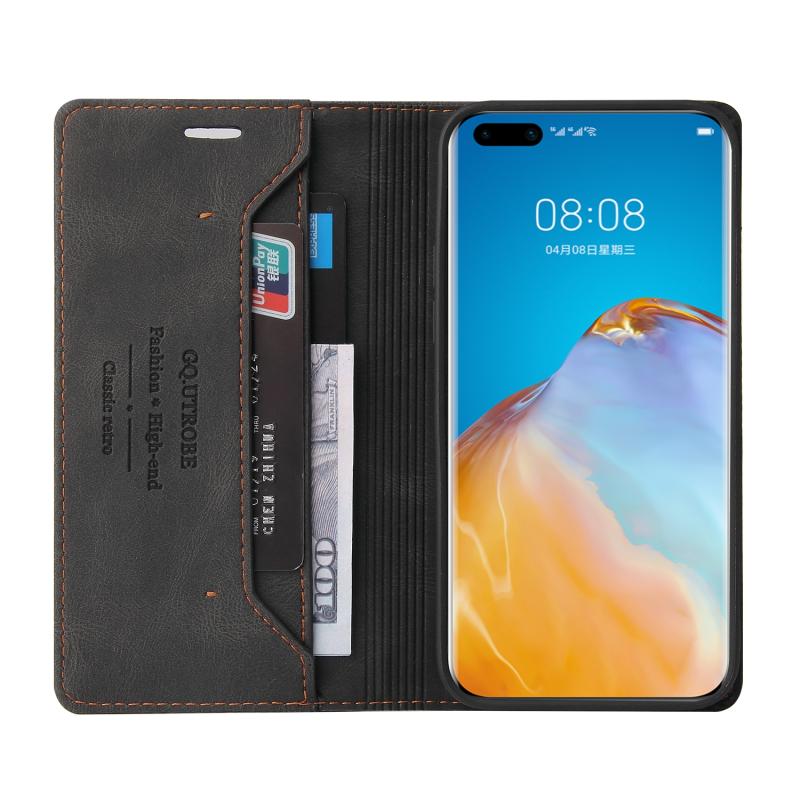 For Huawei P40 Pro Skin Feel Anti-theft Brush Horizontal Flip Leather Case with Holder & Card Slots & Wallet(Black)