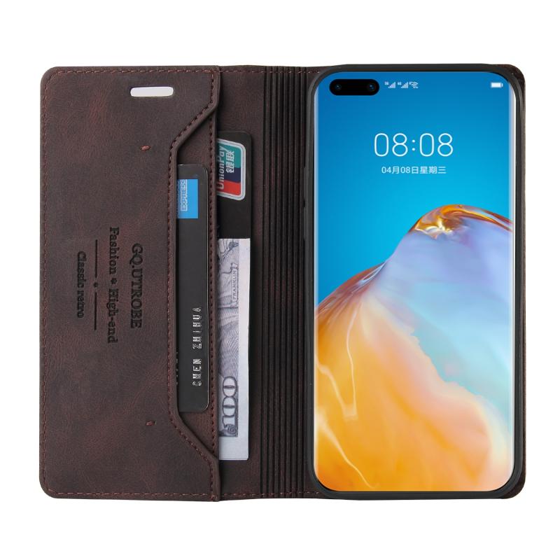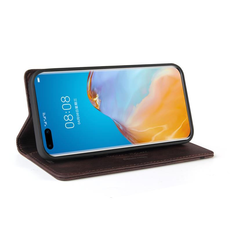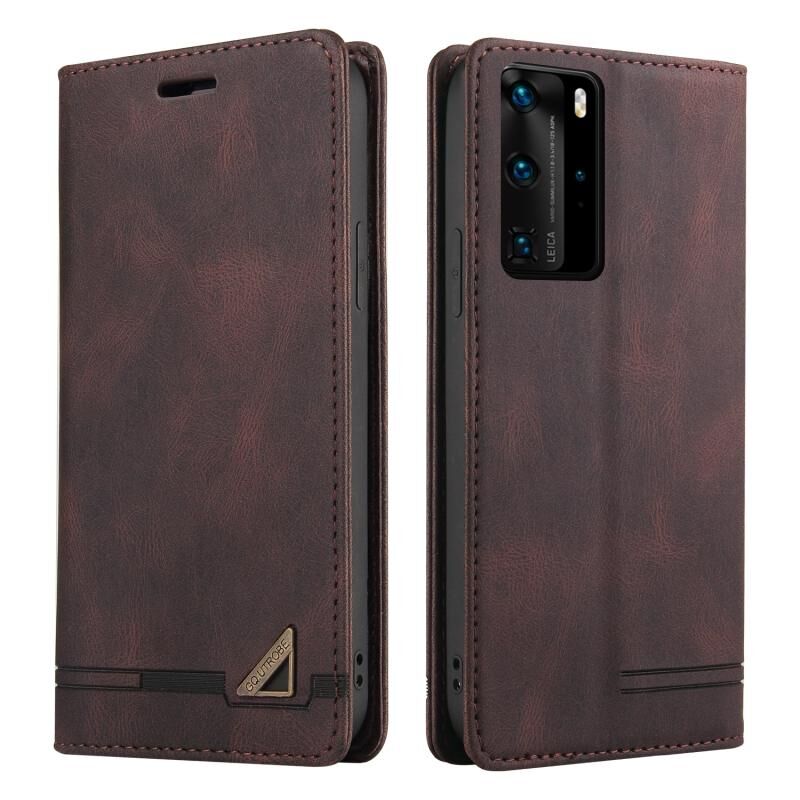 Θήκη δέρματος οριζόντιας αναδίπλωσης με υφή δέρματος για Huawei P40 Pro, αντι-κλοπής, με βάση στήριξης, θήκες για κάρτες & πορτοφόλι (Καφέ)