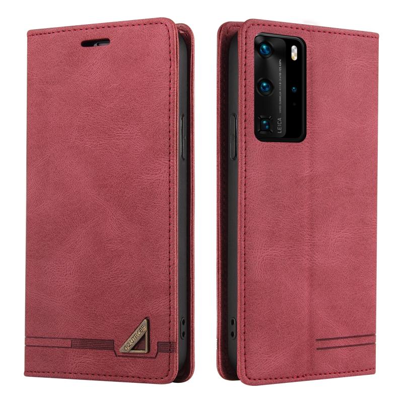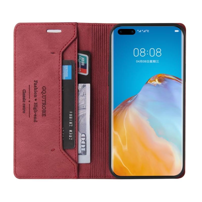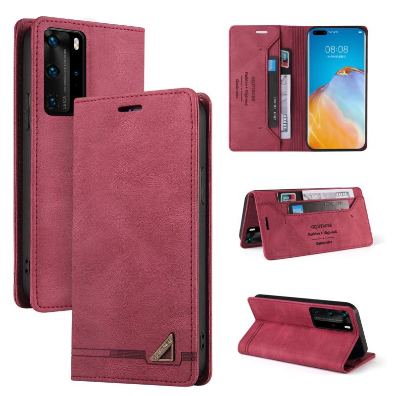 Θήκη δέρματος οριζόντιας αναδίπλωσης με υφή δέρματος για Huawei P40 Pro, αντι-κλοπής, με βάση στήριξης, θήκες για κάρτες & πορτοφόλι (Καφέ)