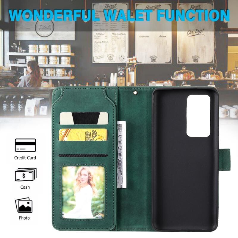 Για το Huawei P40 Pro Skin Feel Business Οριζόντια Flip PU δερμάτινη θήκη με θήκη & υποδοχές πολλαπλών καρτών & πορτοφόλι & κορδόνι & κορνίζα & πλαίσιο φωτογραφιών (πράσινο)