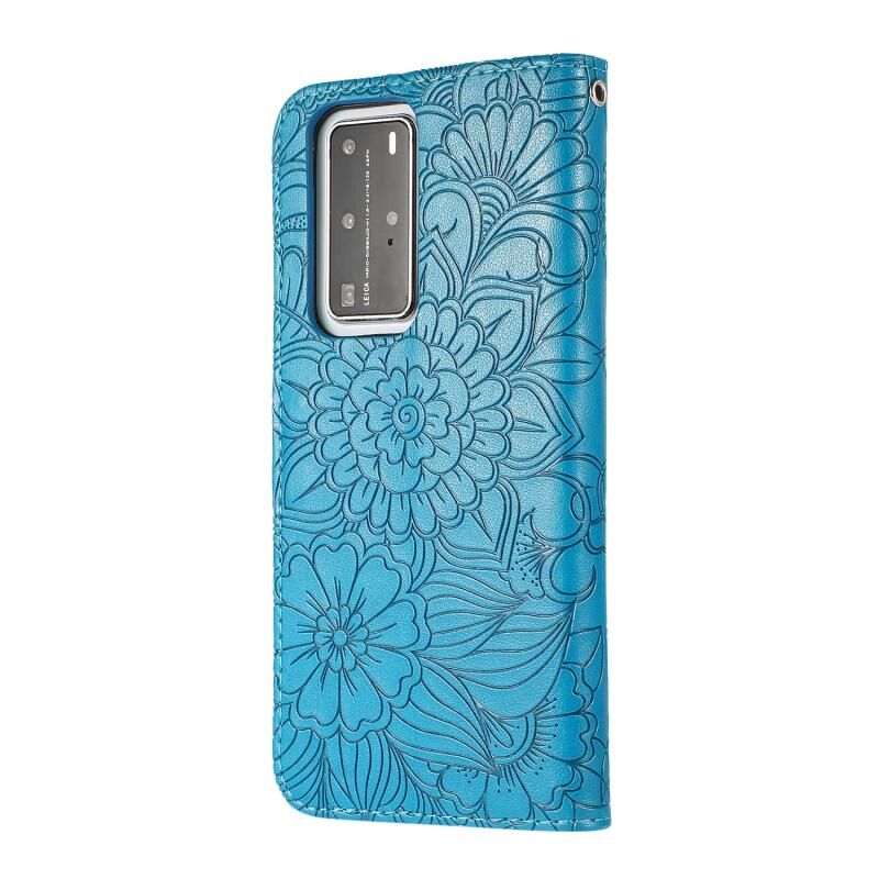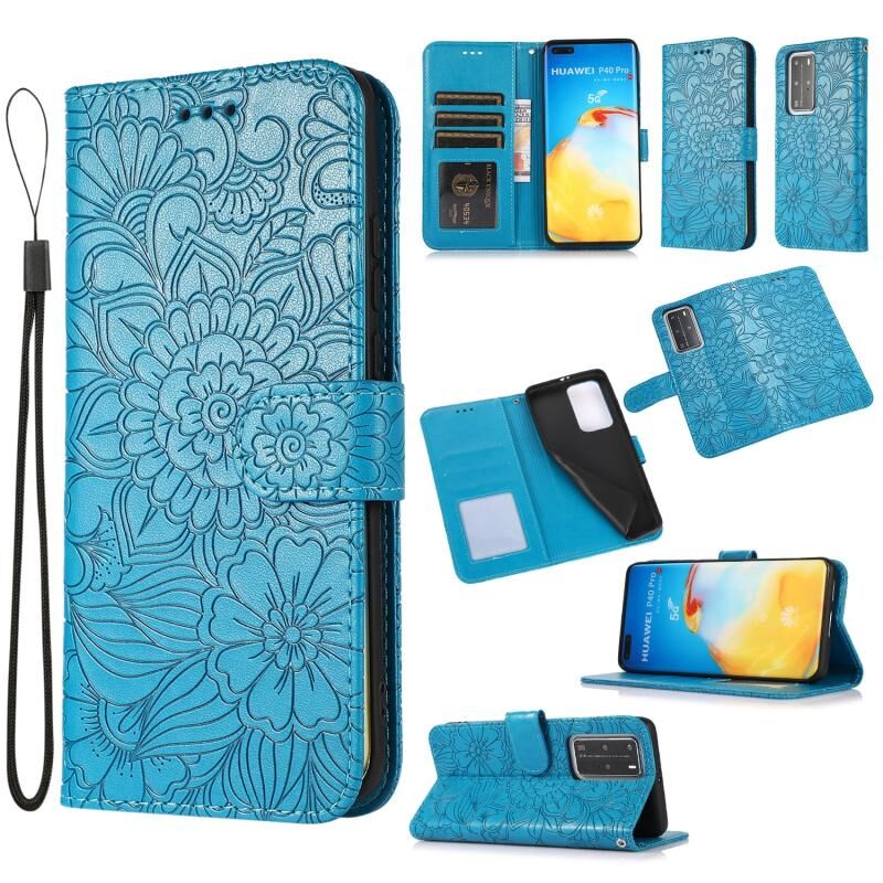 Για Huawei P40 Pro Skin Feel ανάγλυφο ηλιοτρόπιο οριζόντια Flip δερμάτινη θήκη με κάτοχο & υποδοχές καρτών & πορτοφόλι & κορδόνι (μπλε)