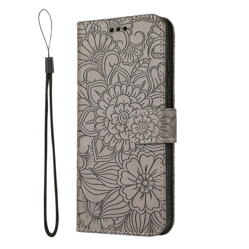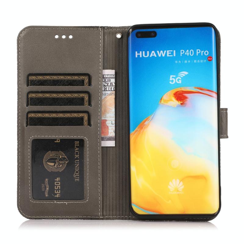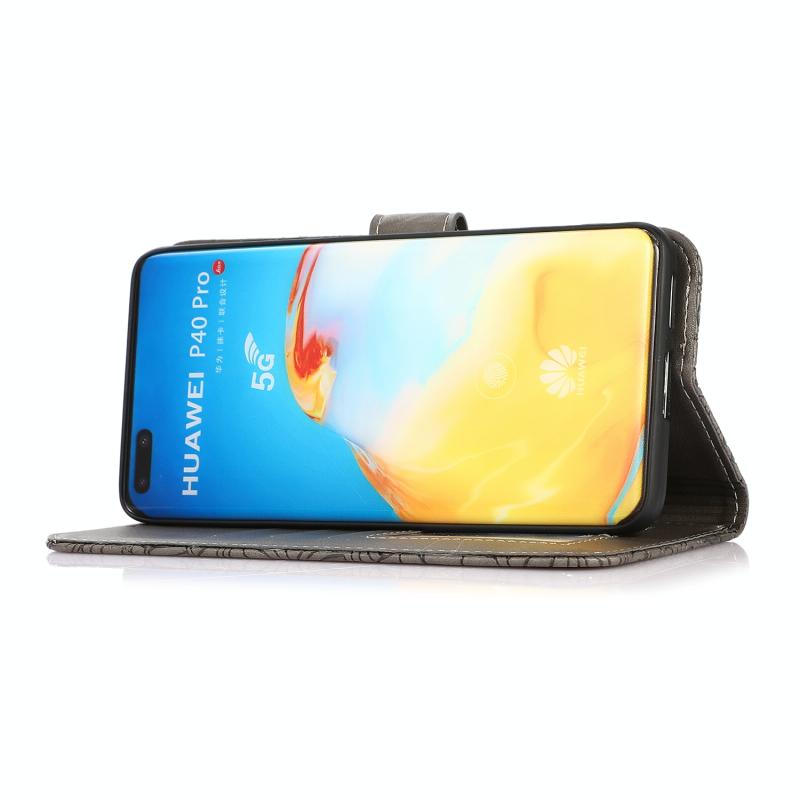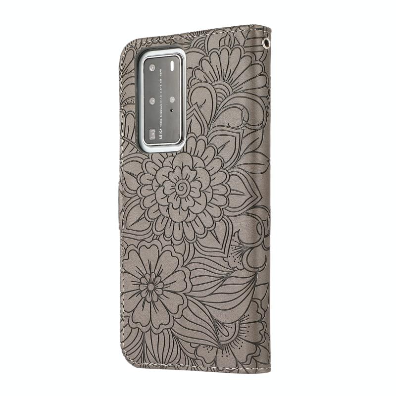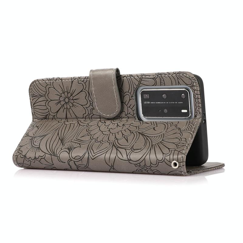 Θήκη δέρματος οριζόντιας αναδίπλωσης με υφή δέρματος για Huawei P40 Pro με ανάγλυφο ηλίανθο, με βάση στήριξης, θήκες καρτών, πορτοφόλι και λουρί (Γκρι)