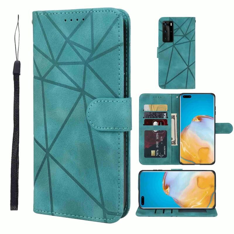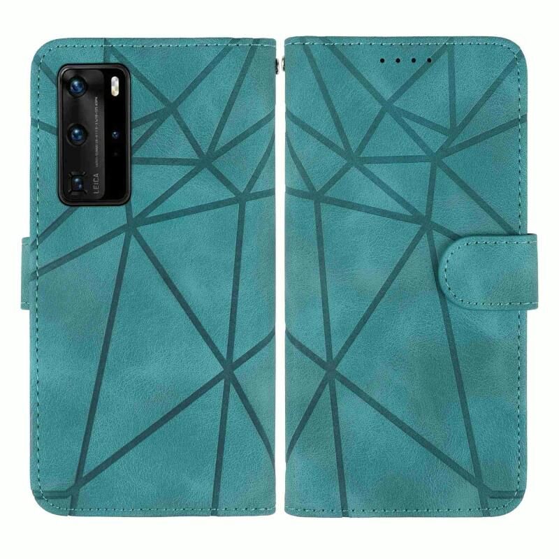 Για Huawei P40 Pro Skin Feel Γεωμετρικές γραμμές δερμάτινη θήκη τηλεφώνου (πράσινο)