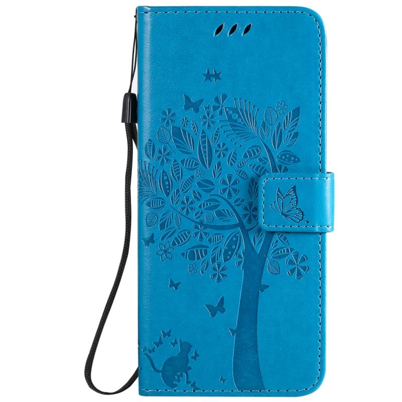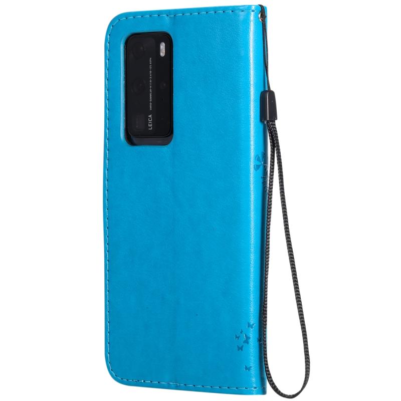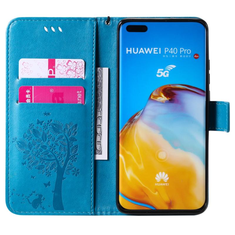 Θήκη Huawei P40 Pro με σχέδιο Δέντρου & Γάτας, εκτύπωση με πίεση, οριζόντια αναδίπλωση, από δερματίνη PU με βάση & υποδοχές καρτών & πορτοφόλι & κορδόνι (Πράσινο)