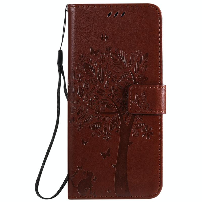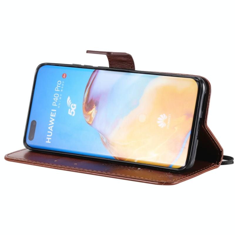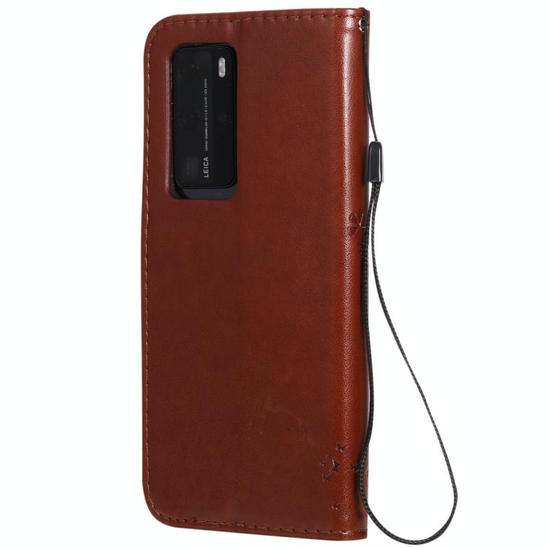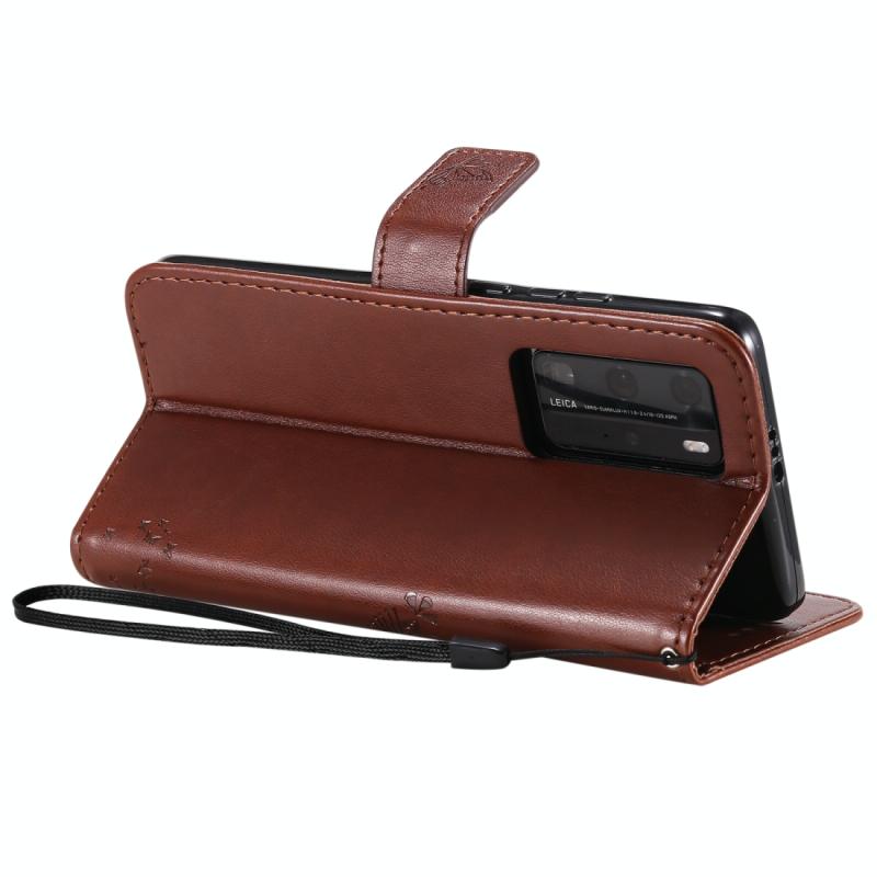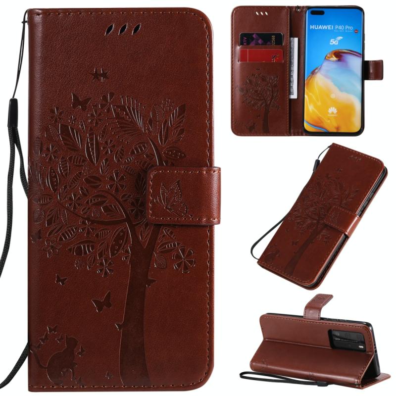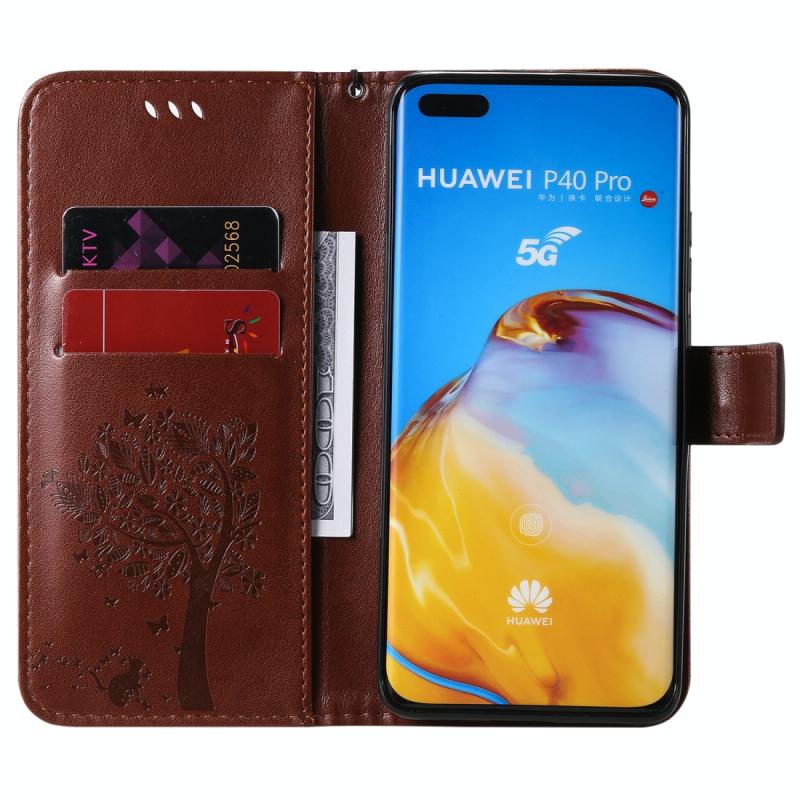 Θήκη Huawei P40 Pro με σχέδιο Δέντρου & Γάτας, εκτύπωση με πίεση, οριζόντια αναδίπλωση, από δερματίνη PU με βάση & υποδοχές καρτών & πορτοφόλι & κορδόνι (Πράσινο)