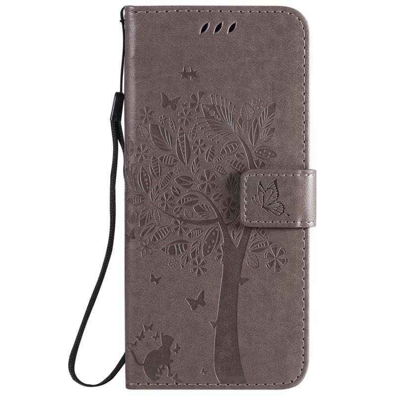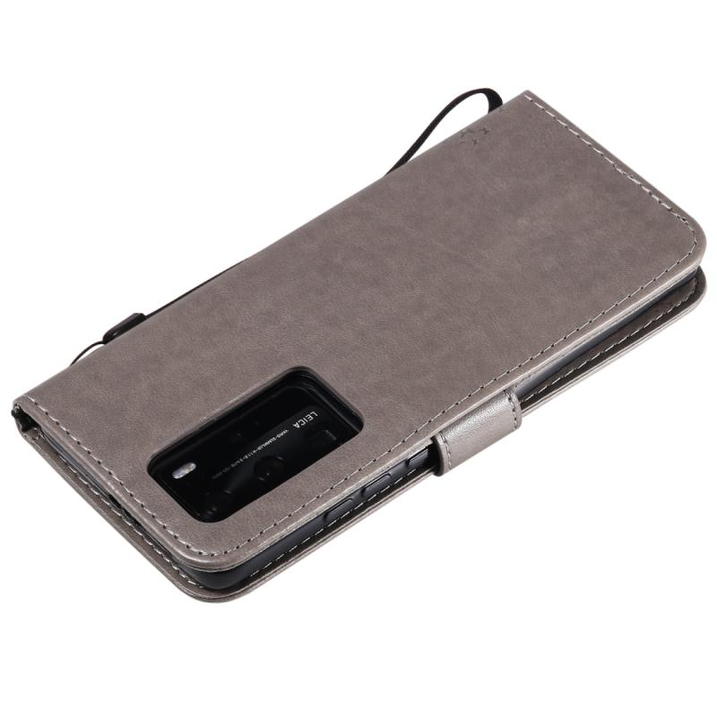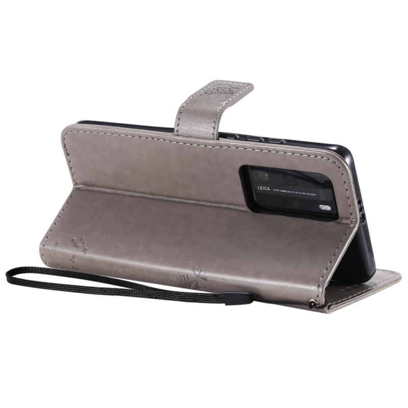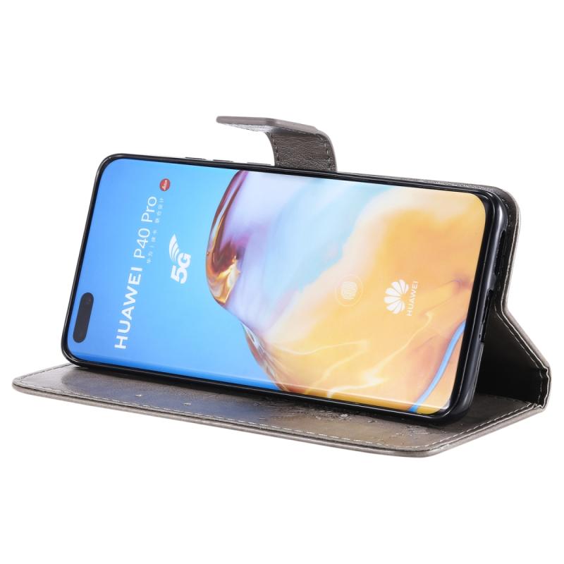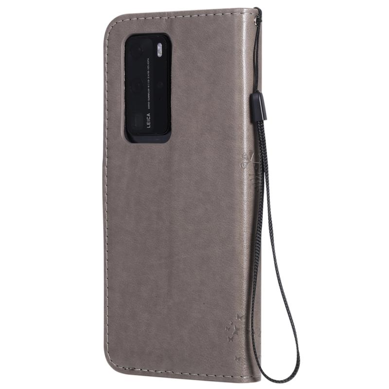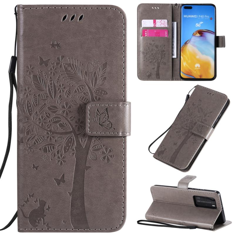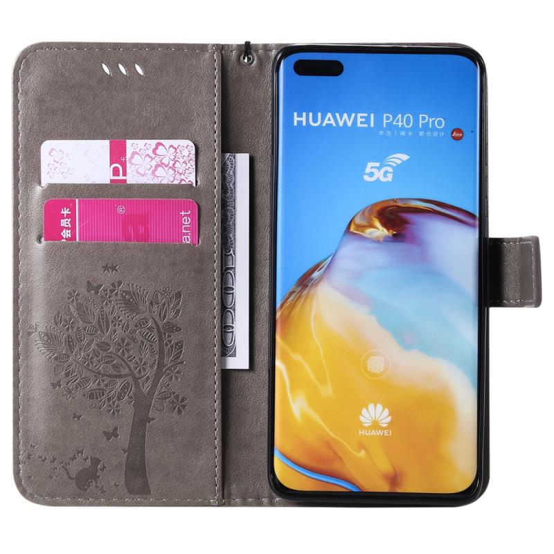 Θήκη Huawei P40 Pro με σχέδιο Δέντρου & Γάτας, εκτύπωση με πίεση, οριζόντια αναδίπλωση, από δερματίνη PU με βάση & υποδοχές καρτών & πορτοφόλι & κορδόνι (Πράσινο)