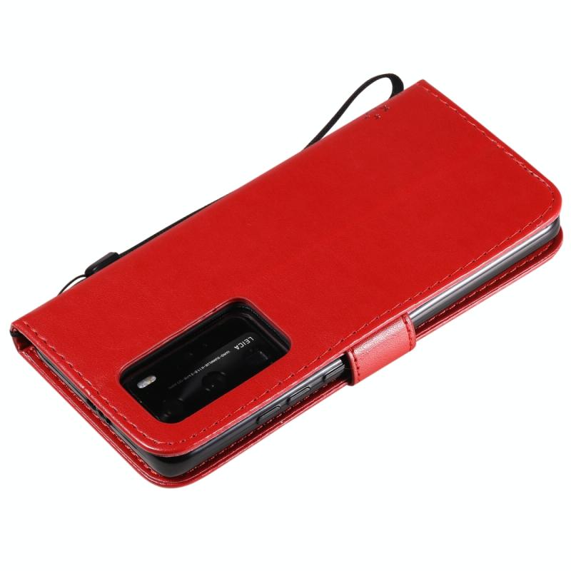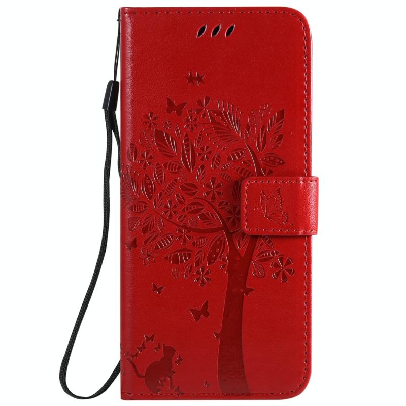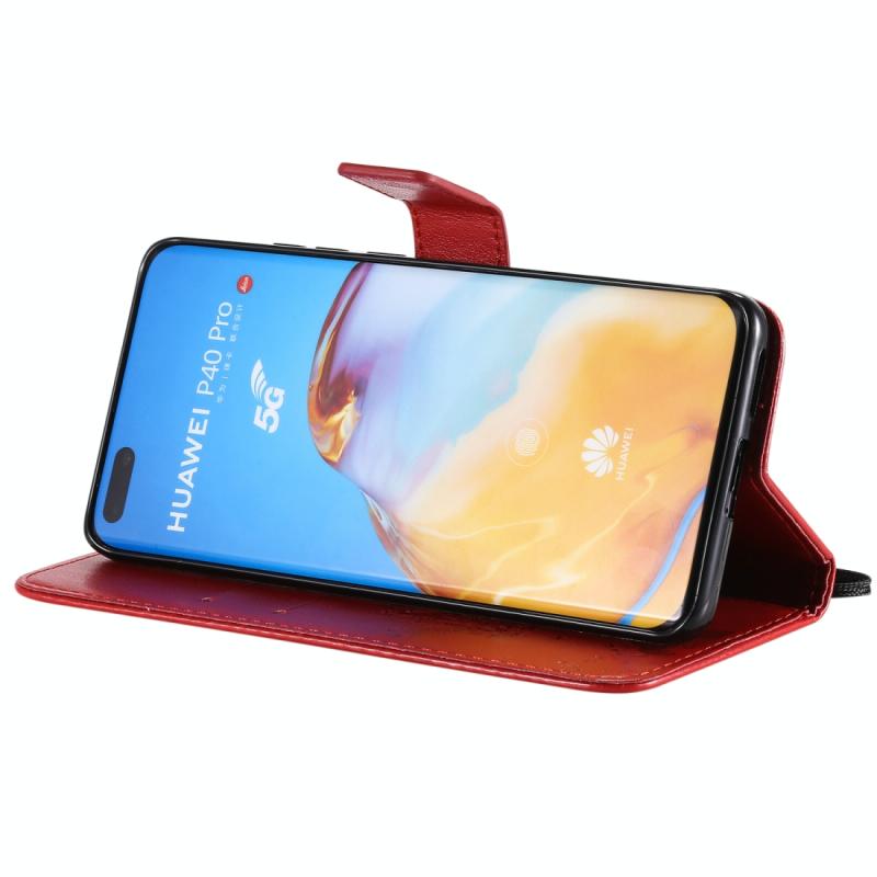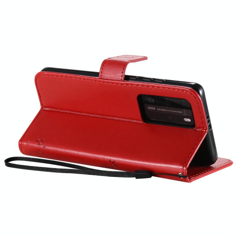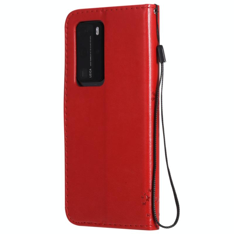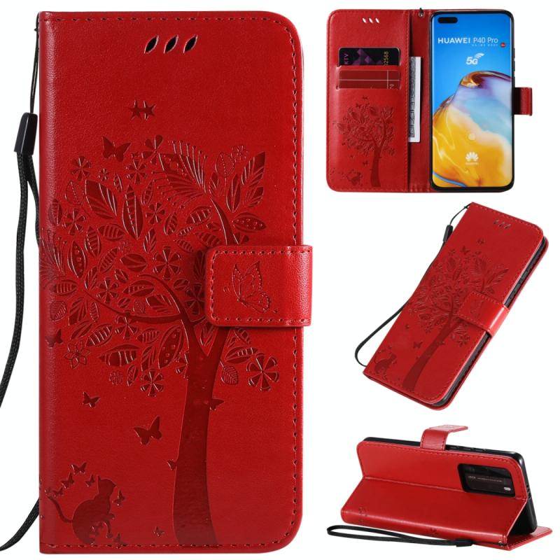Θήκη Huawei P40 Pro με σχέδιο Δέντρου & Γάτας, εκτύπωση με πίεση, οριζόντια αναδίπλωση, από δερματίνη PU με βάση & υποδοχές καρτών & πορτοφόλι & κορδόνι (Πράσινο)