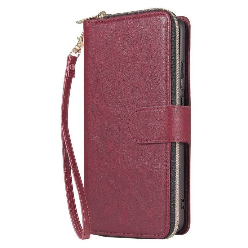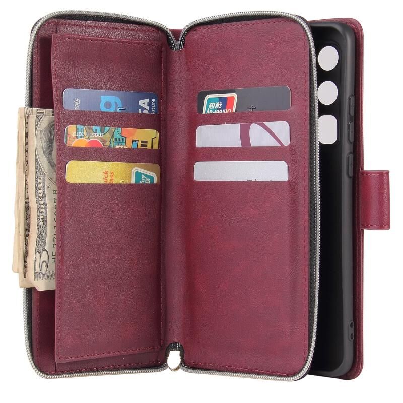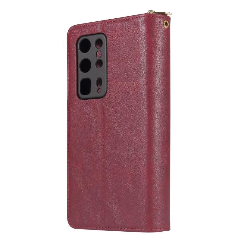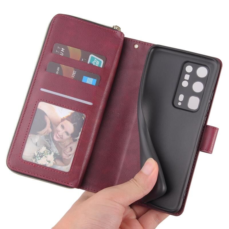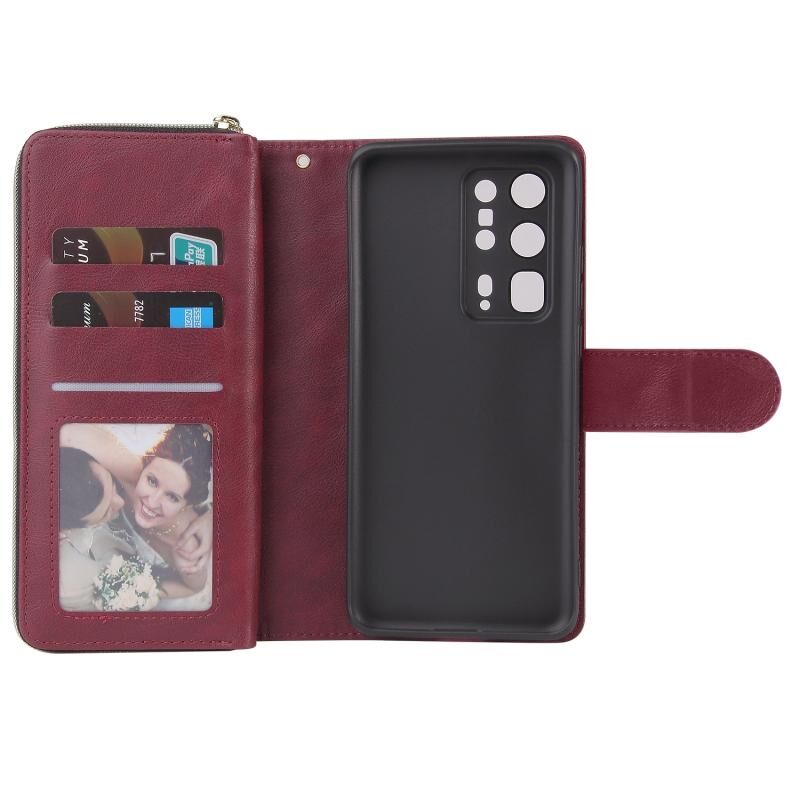 Για Huawei P40 Pro+ φερμουάρ τσάντα πορτοφόλι οριζόντια Flip PU δέρμα υπόθεση με κάτοχο & 9 υποδοχές για κάρτες & πορτοφόλι & κορδόνι & κορνίζα & πλαίσιο φωτογραφιών (Κρασοκόκκινο)