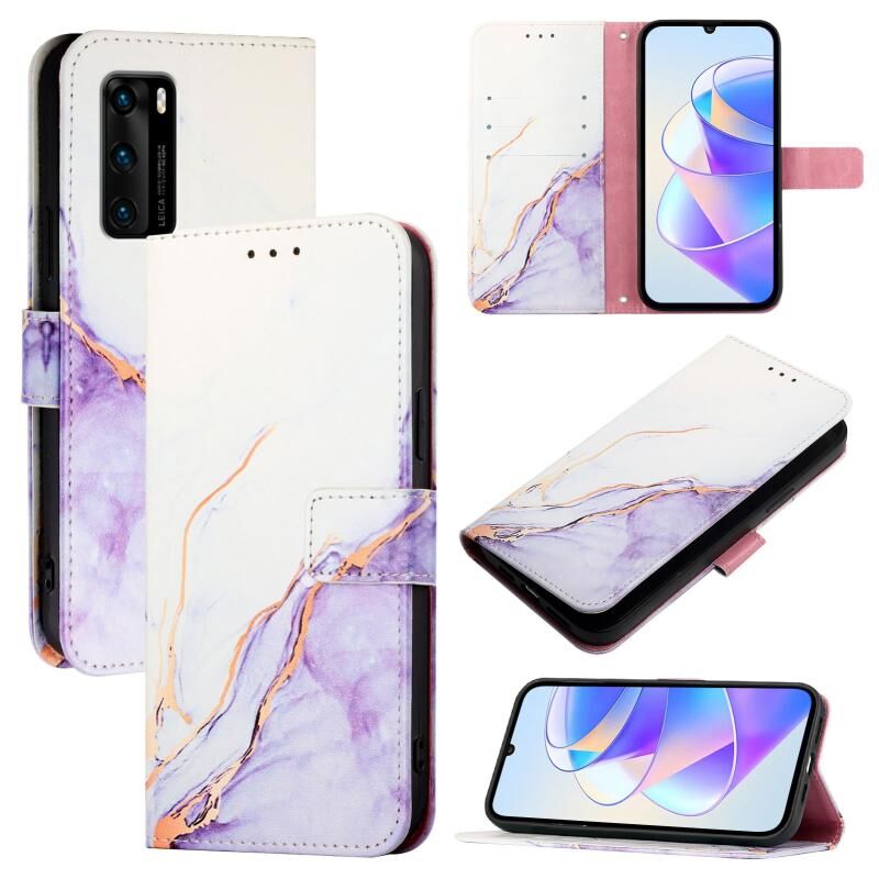 Θήκη τηλεφώνου Huawei P40 PT003 από δέρμα με σχέδιο μάρμαρου και καπάκι (Λευκό Μωβ)
