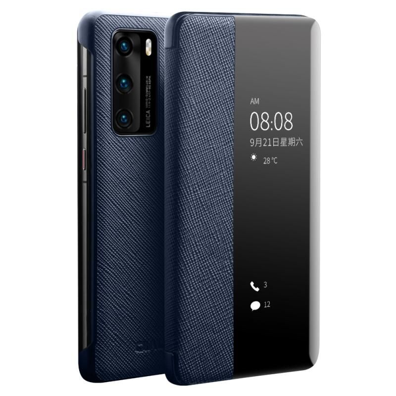 Για Huawei P40 QIALINO Puda υφή πλευρά παράθυρο View δερμάτινη θήκη τηλεφώνου (μπλε) (QIALINO)