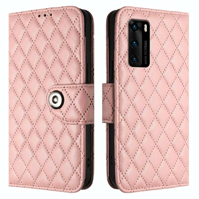 Για το Huawei P40 Rhombic Texture Flip δερμάτινη θήκη τηλεφώνου με κορδόνι (Coral Pink)