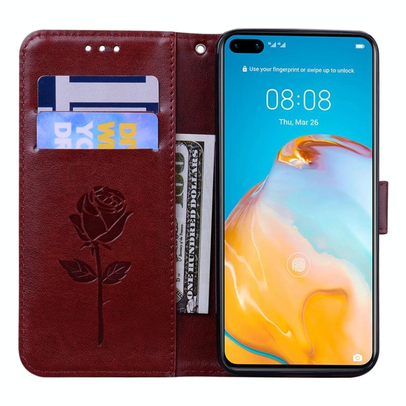 Θήκη Huawei P40 Rose Embossed Οριζόντια Δερμάτινη PU με Θήκη & Θήκες Καρτών & Πορτοφόλι (Καφέ)