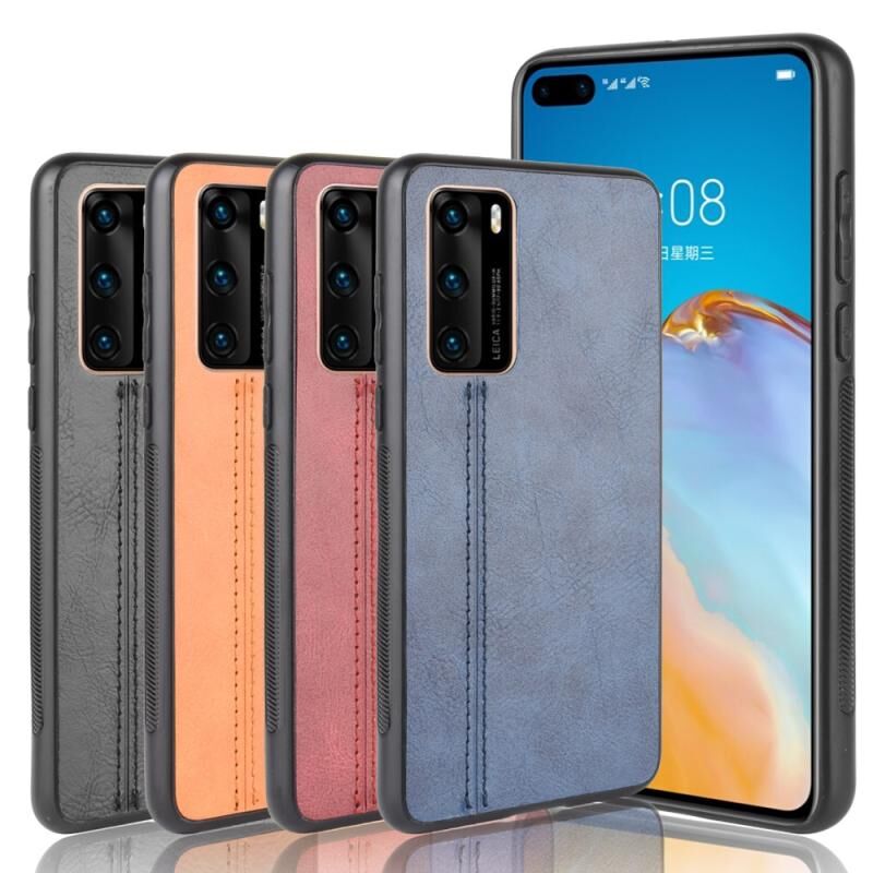 Για Huawei P40 Shockproof Ράψιμο μοτίβο αγελάδας δέρμα PC + PU + TPU υπόθεση (μπλε)